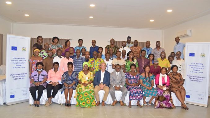 The National Monitoring and Evaluation Directorate (NaMED) in the office of the President in collaboration with the European Union (EU) through its State Building Contract Phase III (SBC) implemented by B&S Europe, held a one-day validation workshop on the National Monitoring and Evaluation Strategy, in Freetown. In attendances were selected MDA’s, Local Councils, donor partners, CSO’s, SLANGO and the media.